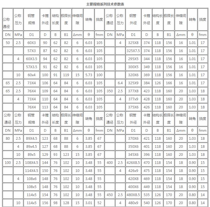 本系列卡箍式柔性管接頭是按國家標(biāo)準(zhǔn)管徑配套和根據(jù)鑄石復(fù)合管,管徑配套設(shè)計(jì),每項(xiàng)通徑分幾種規(guī)格,如工程中還需其它規(guī)格管徑在訂貨時(shí)注明我廠可進(jìn)行設(shè)計(jì)配套卡箍。
